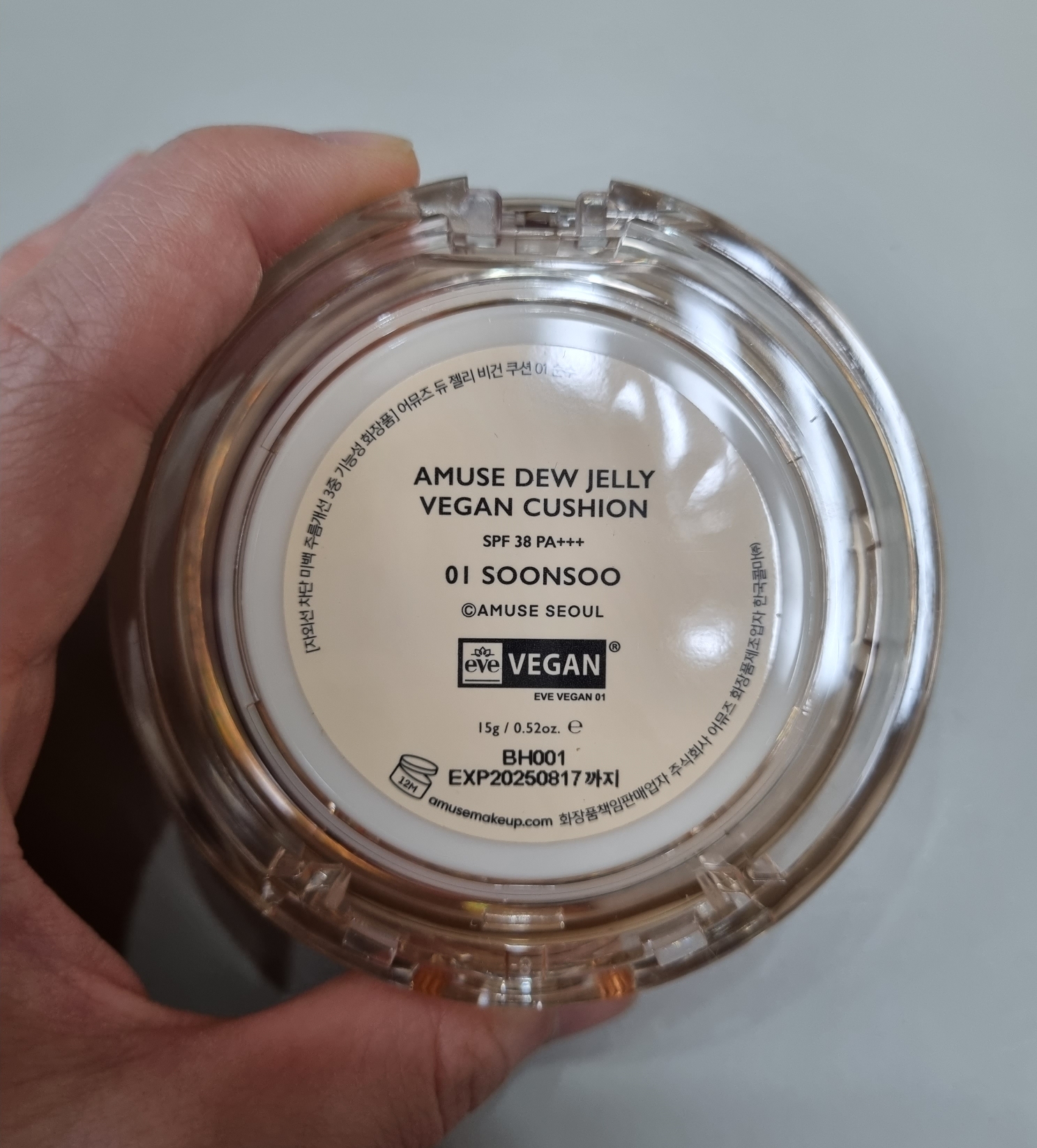 아무튼 저것만 바르고 저는 굳이 프라이머나 톤업베이스 다 바르지 않고 바로 어뮤즈듀 젤리 비건 쿠션을 발라요.오른쪽에 보면… 붙이고는 있는데…? 할 수 있지만 자세히 보면 보여요.자세히 보면 보여.어뮤즈가 그렇다.진짜 이거 너무 얇아요.내 기준으로 샤넬 모모메베를 발랐을 때보다 더 투명하게 표현됩니다.진짜 결 정리하고 톤 가볍게 보정하는 느낌.