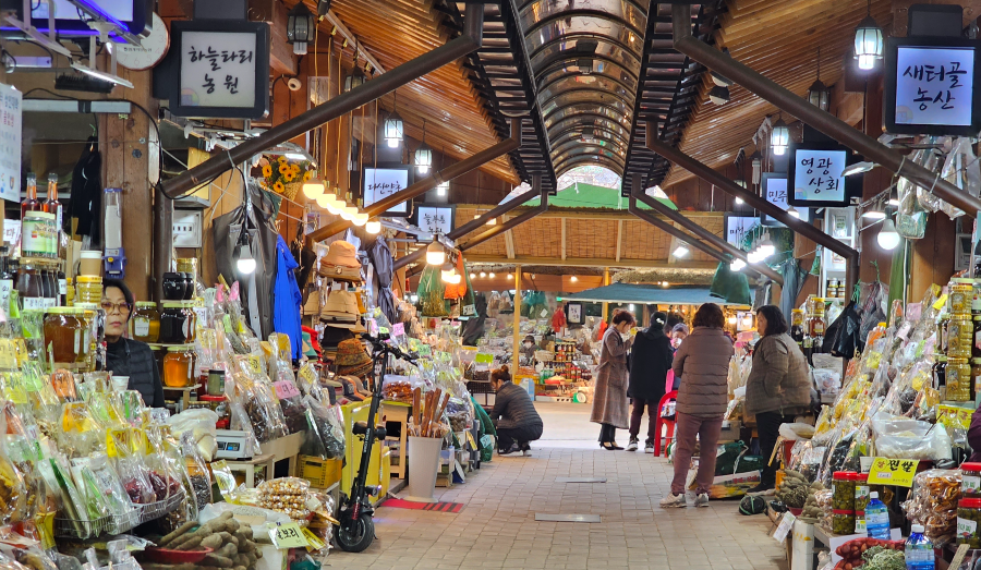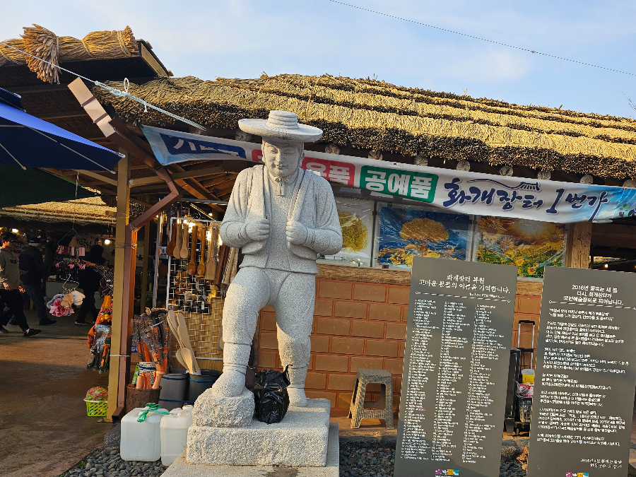 옛날 시골 시장의 정취를 느낄 수 있는 화개장터에는 국밥집, 도토리묵, 바지락국밥집, 여관, 과자장수, 산나물, 녹차 등 특산품이 있다(자료출처: 광양- 총무청)